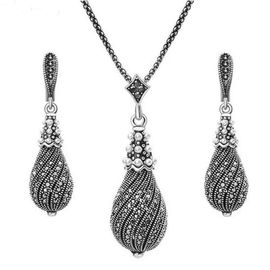 Gray Black, Water Drop, Sparkling Earring and Pendant Necklace Set, Earrings 2", pierced clasp straight back, Pendant 2 1/8".Stainless Steel, Simulated-pearl