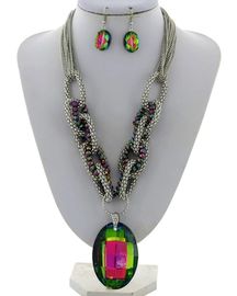Glass Multicolor NECKLACE LENGTH : 21" + EXT, Hook Earrings, Multicolor Glass.
